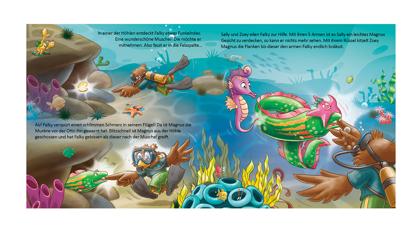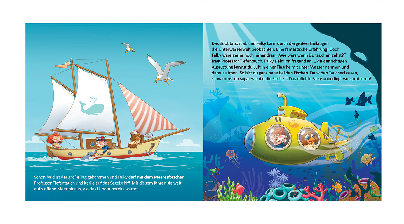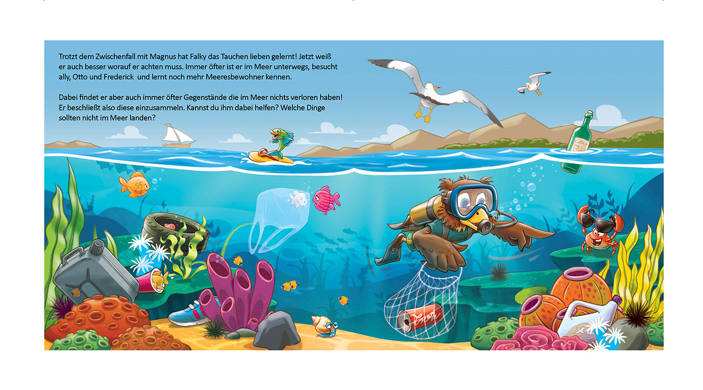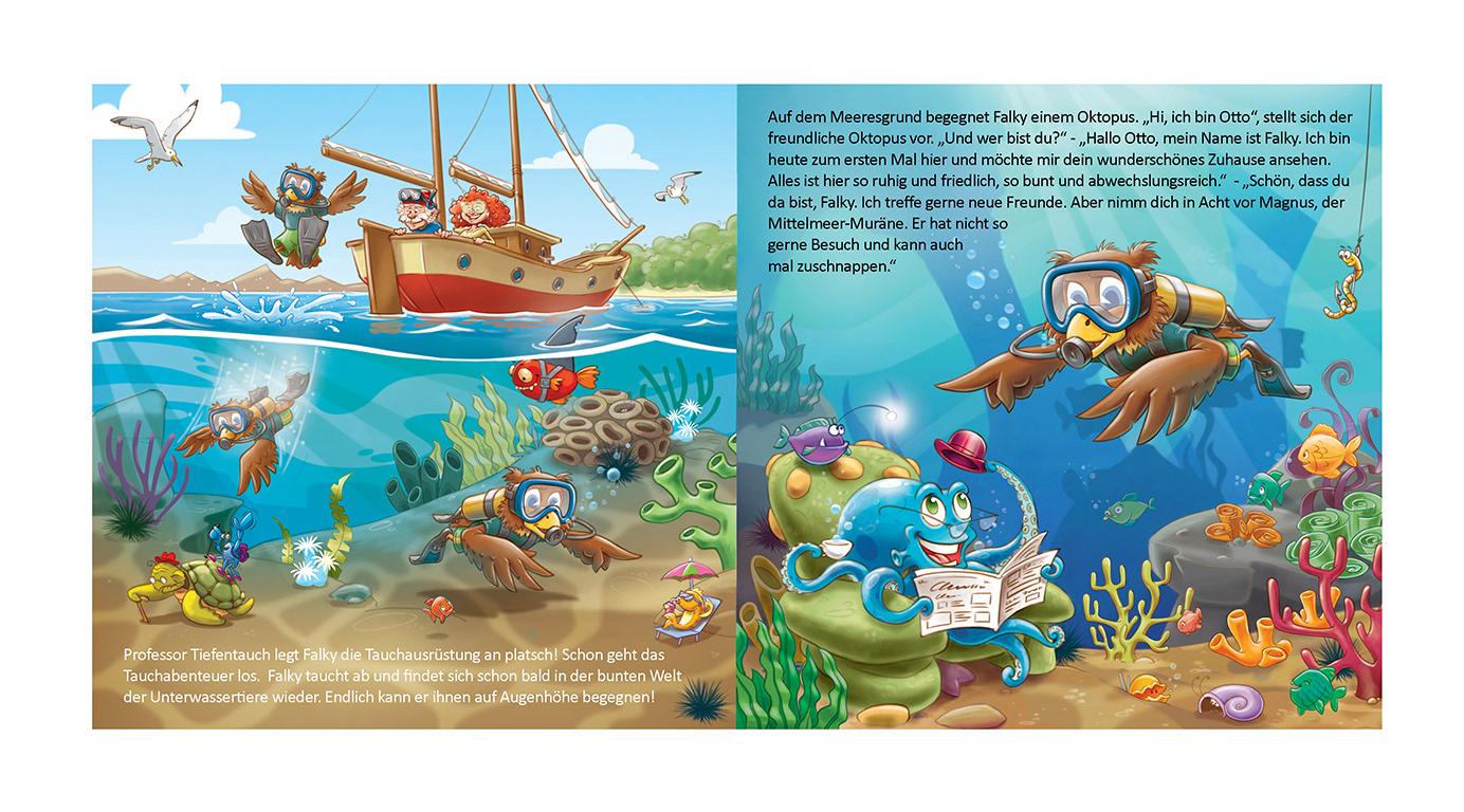 For the Falkenstein Group I have illustrated my third Children Book about FALKY, his friends and adventures. FALKY is a mascot who you can find at any of their hotel resorts in Austria, Croatia and Italy.
