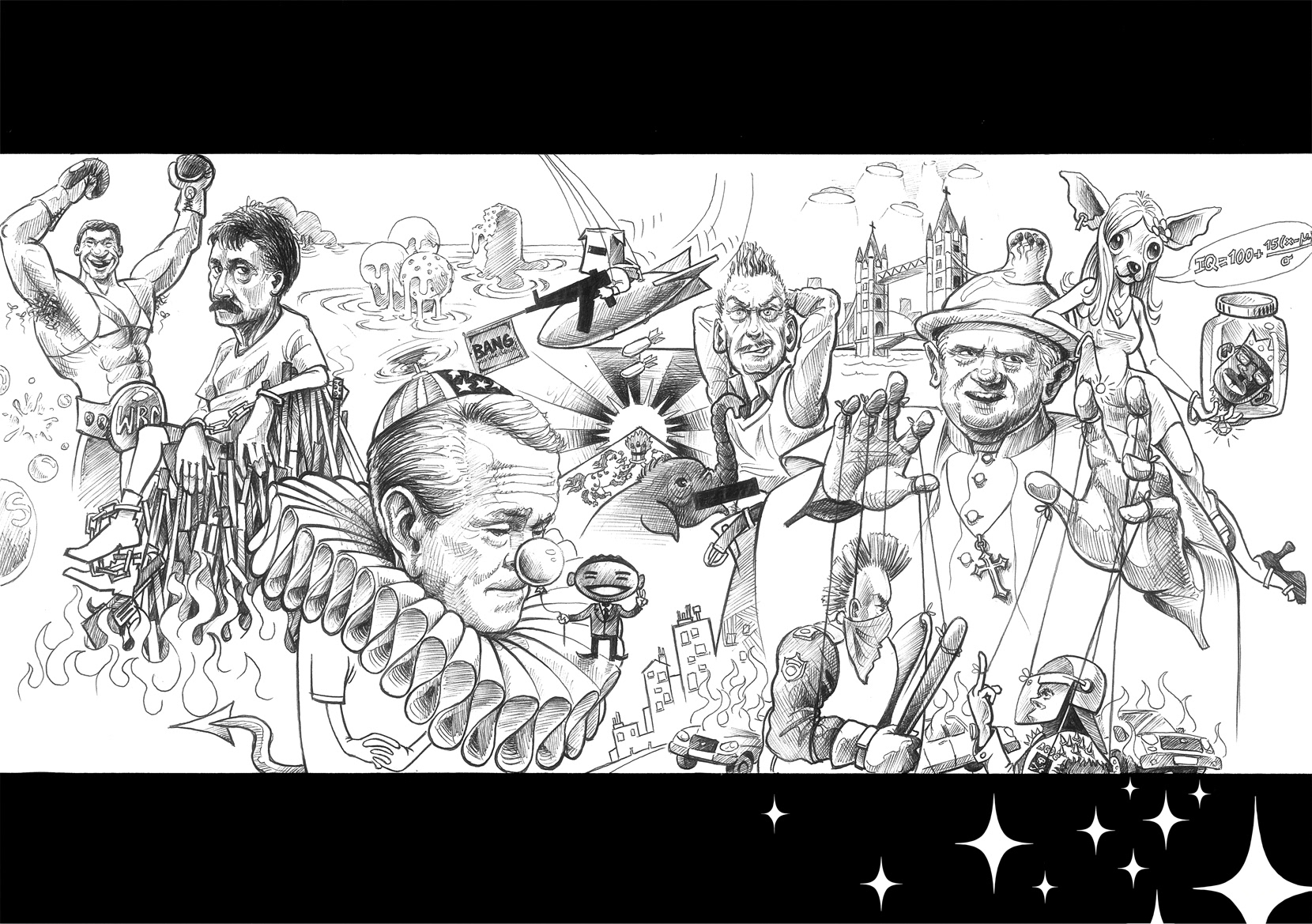 A few of the political and other happenings of week 8 in 2009 which I have drawn for an exhibition at Steendrukker Gallery in Amsterdam, 2010